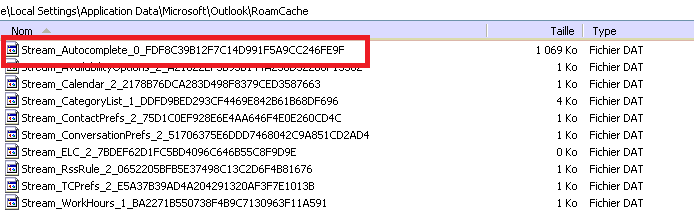 Sous Windows Xp rendez vous dans le dossier « c:\Documents and Setting\Nom de l’utilisateur\Local Setting\Application Data\Microsoft\Outlook\RoamCache »